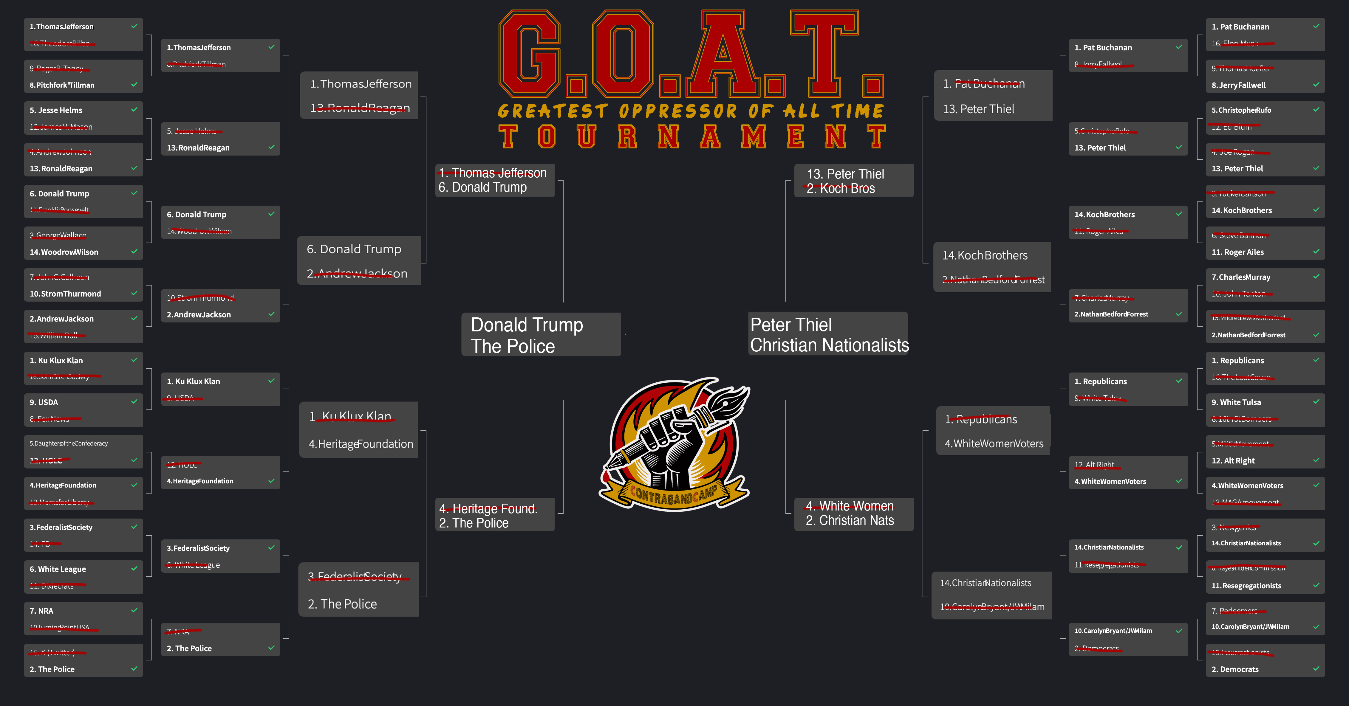 The quest to find the Greatest Oppressor of All Time has reached the Final Four. Who will take home the gold medal for white supremacy?