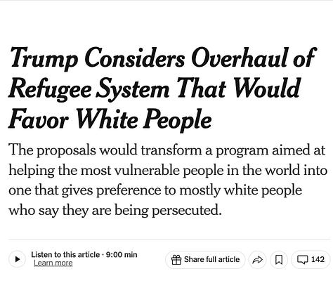 Then again, if we listened to those woke worrywarts, you might believe Trump was going to dismantle the Department of Education system, gut the Civil Rights Act, reverse the Great Replacement by paying white women to get pregnant, restrict immigration to white people, bomb the largest country in Africa, turn the elite colleges into white institutions, force media corporations to kick Black people off the air, silence the most trustworthy journalists and hand out reparations …