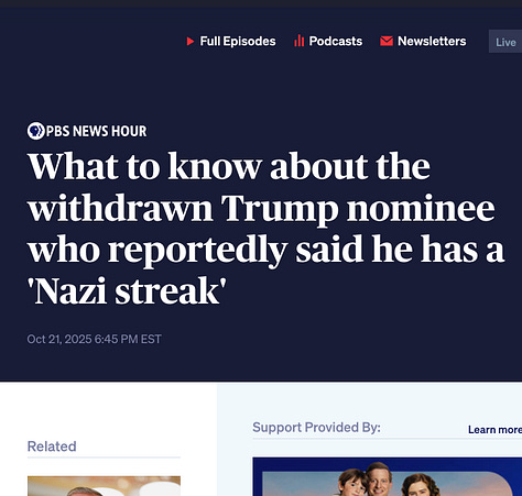 Speaking of cowardly journalism, remember when the wealthy oligarch who owns the Washington Post rejected wokeness for free market capitalism? Not for us, wokey! Amazon Basics Lex Luthor ultimately capitulated to Trump to secure taxpayer funding for his spaceship hobby. Buoyed by the anti-woke movement, CBS tapped Bari Weiss—a cuddly, right-wing Cabbage Patch doll who sounded competent when she threw on a pair of glasses and spewed right-wing talking points like someone installed a Rush Limbaugh cassette in the back of a Teddy Ruxpin—to run its news division. The fact that bizarro Rachel Maddow is turning one of the bastions of network news into a Joe Rogan podcast is not surprising to me …